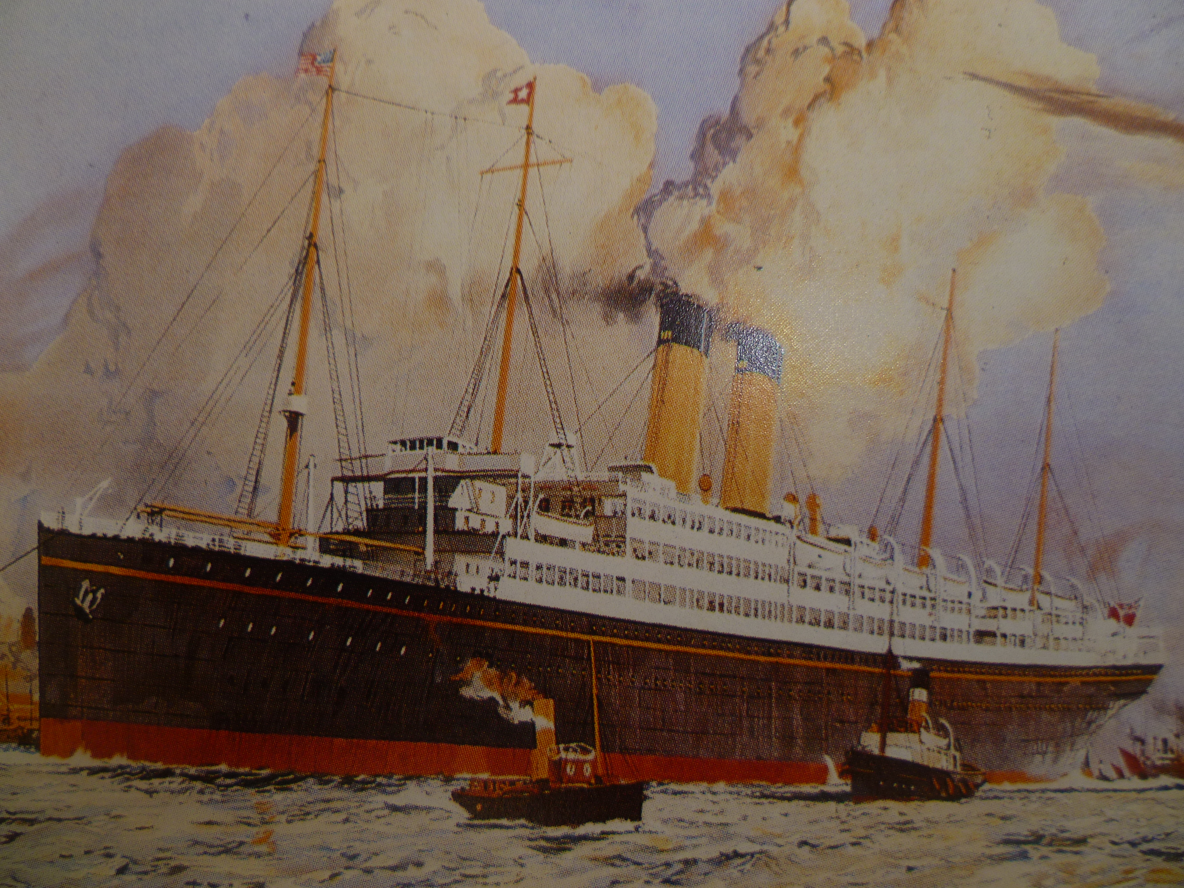 The subject of the painting is the White Star Line’s “RMS Celtic”, a sister ship and predecessor of the ill-fated “Titanic”. The “Celtic” was launched in April 1901, made her maiden voyage from Liverpool to New York on 26 July of that year and and was the largest ship in the world at the time.