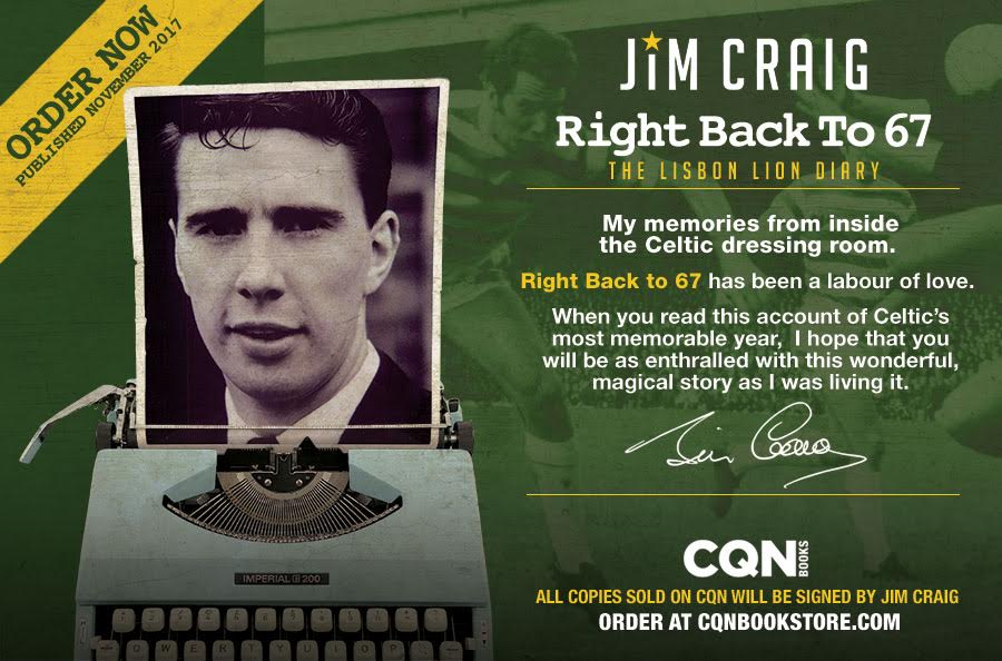 Right Back To 67 THE LISBON LION DIARY will be published soon by CQN Books (Celtic Quick News). Watch out for details at http://www.celticquicknews.co.uk/ – and for the chance to be one of the first to get your hands on Jim’s book, which aims to be the last word on that magical season, place an order at http://www.cqnbookstore.co.uk as soon as possible.