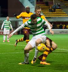 The second came alarmingly late in the game three days later at Fir Park, in the League. Chasing our 66th unbeaten match in succession and trailing to a freakish own-goal, it was beginning to look bad. Then, with two minutes remaining on the clock, for some reason best known to himself, Motherwell defender Rose decided to barge and push Callum McGregor off the ball when he was heading away from goal but well inside the penalty area. The tackle was fairly typical of the Steelmen’s “robust” approach again that night … and in full view of referee Willie Collum, who pointed to the spot without hesitation.